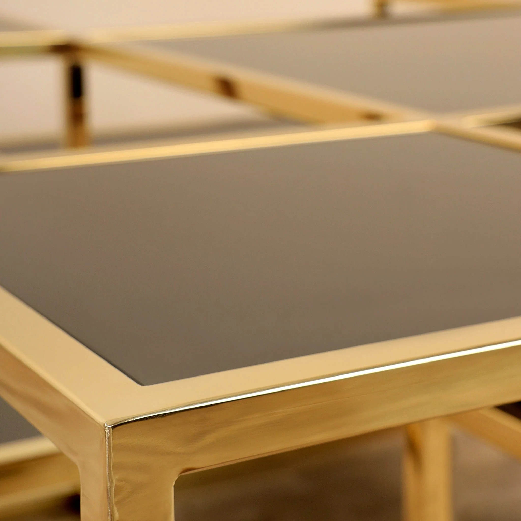 An airy silhouette on the Kaiser coffee table will lend an elevated look to a living area. Its clean lines and multi-level surfaces add interest while the stainless steel and glass materials project a contemporary image.