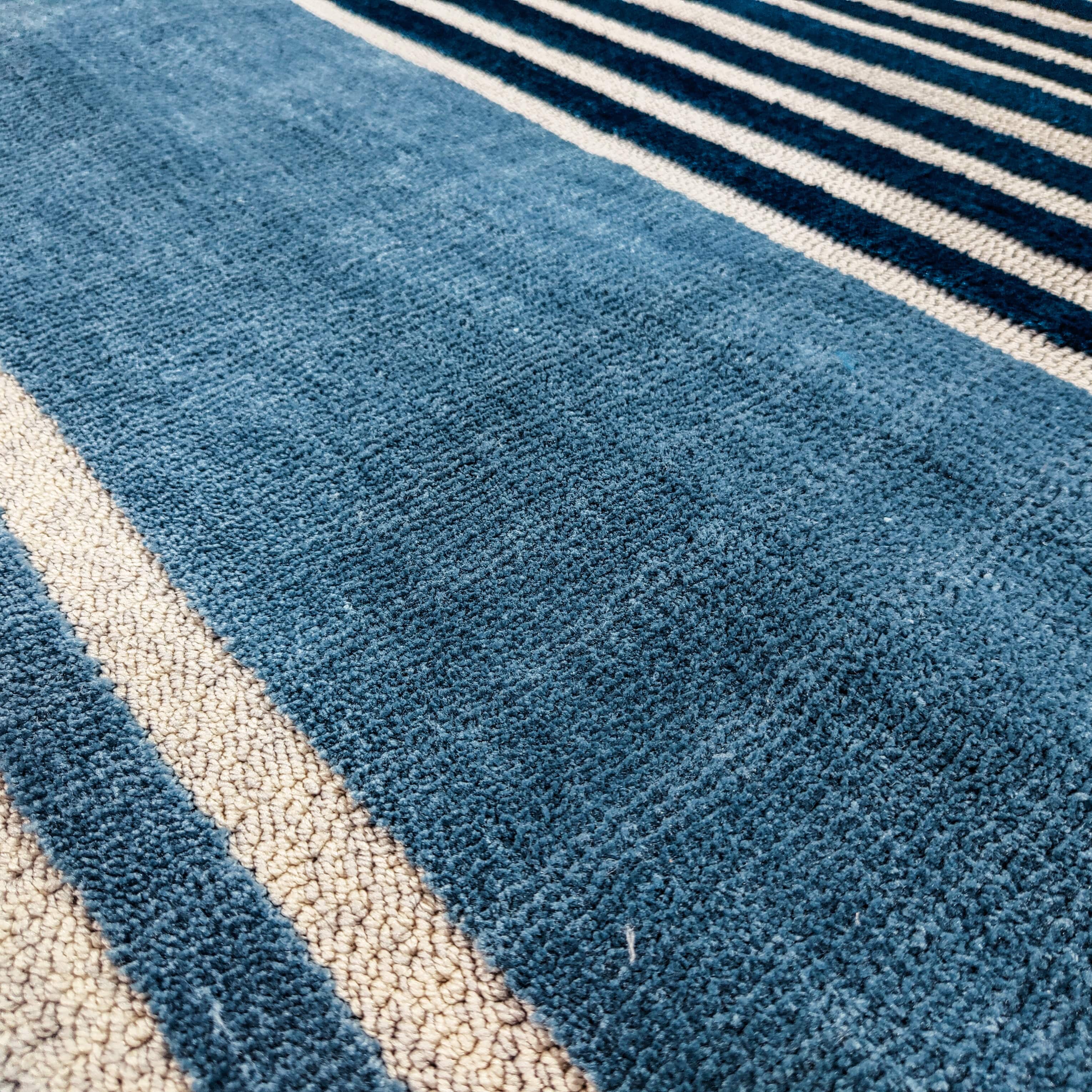 Treat your floors to a stunning area rug designed in versatile blues, greys, and creams. Crafted with careful attention to detail, this rug has a low pile and is woven from high-quality polyester fibers, ensuring both durability and luxurious softness. Ideal for adding a touch of comfort to any room in your home, this rug provides a welcoming and cozy feel underfoot for the bedroom dining room, or living area.