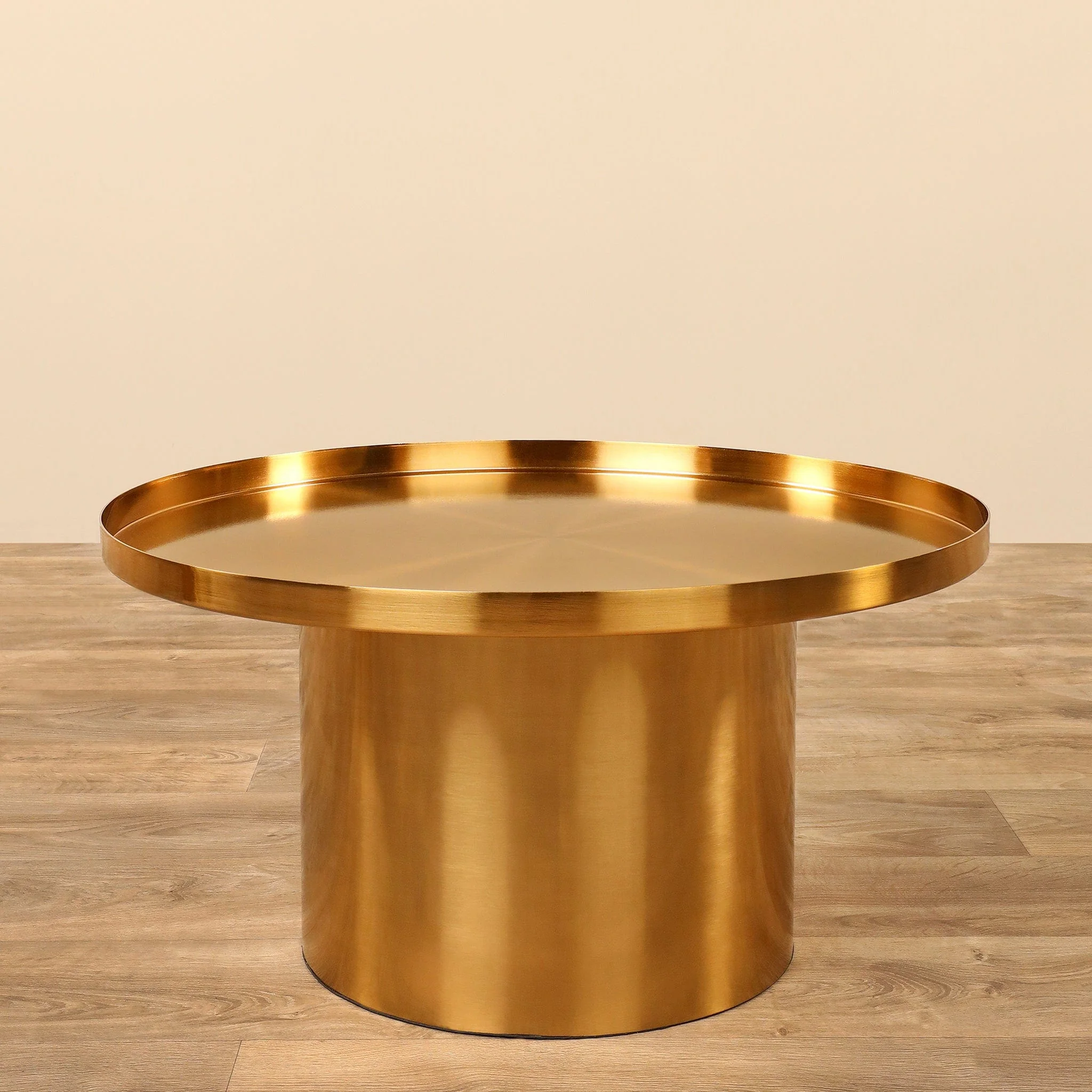 Elevate your space with the Zoe Coffee and Side Table, the perfect blend of elegance and modern flair. Featuring a lustrous gold finish, these round tables boast a pedestal base that adds a touch of sophistication. The tray-style top offers a practical yet stylish surface for essentials, while the metal construction ensures durability and a chic, contemporary edge. Whether used as a statement piece or a functional accent, this side table set brings a radiant charm and a touch of luxury to any room.
